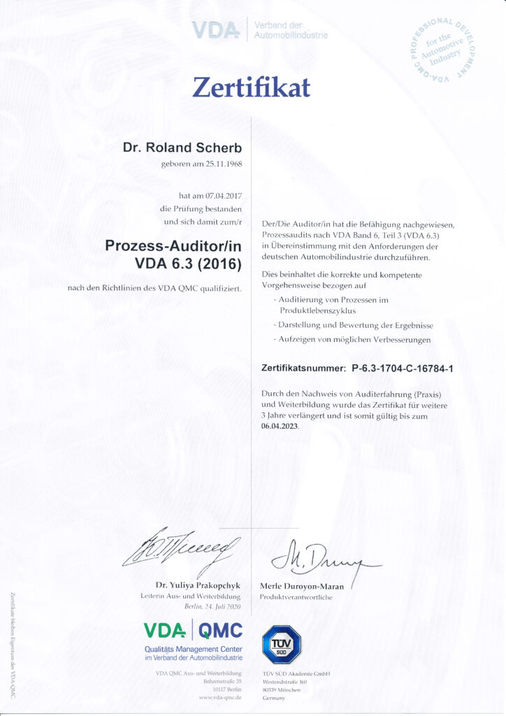 Die PeRoBa® Unternehmensberatung GmbH hat bereits erfolgreich nach der neuen IATF 16949:2016 beraten und auditiert. Fragen zur Umsetzung und die Interpretation der Anforderungen werden verständlich und pragmatisch umgesetzt. Insbesondere der Bereich Lieferantenentwicklung ist einer unserer Schwerpunkte und ergänzt sich optimal zu ihrem Nutzen.