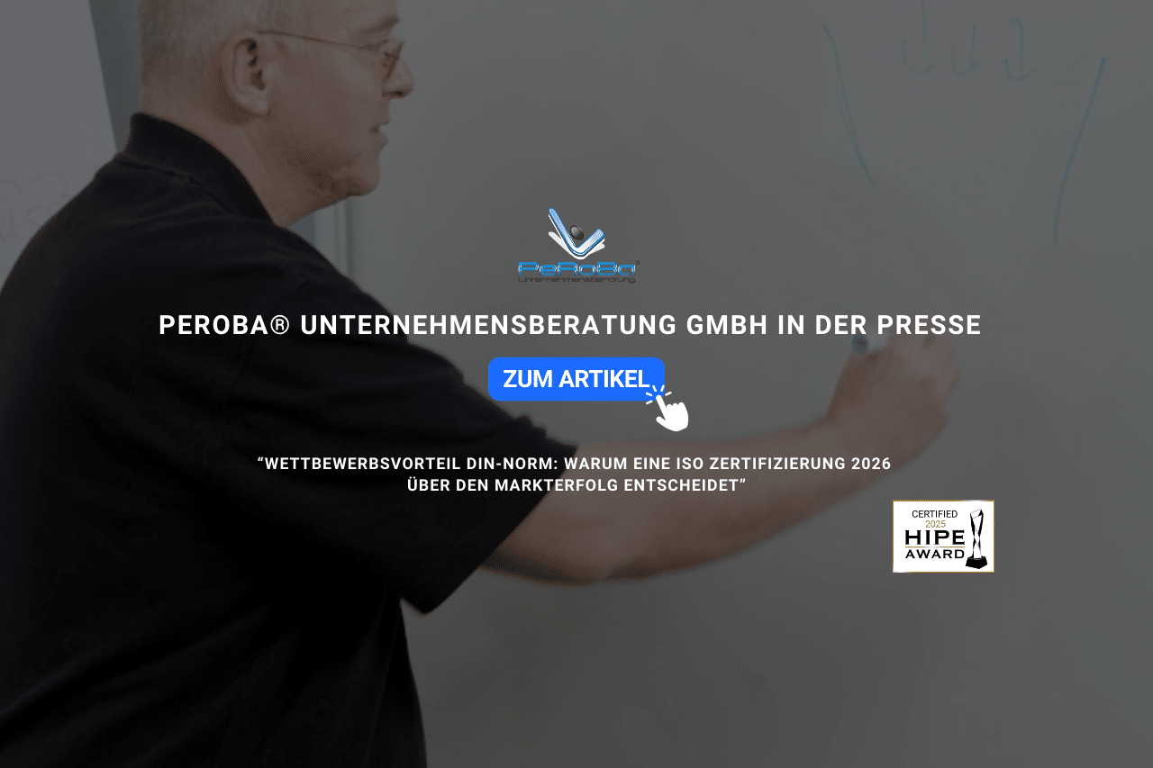 Für diese exzellente Beratungsleistung wurde die PeRoBa® Unternehmensberatung mit dem renommierten HIPE AWARD ausgezeichnet. Dieser Award wird ausschließlich an Dienstleister verliehen, die eine überdurchschnittliche Servicequalität und Kundenorientierung nachweisen können. In einem strengen Prüfverfahren werden dabei die Hauptkategorien Qualität, Leistung, Service und Effektivität bewertet. Die Auszeichnung unterstreicht, dass PeRoBa® zu den Top-Dienstleistern im deutschsprachigen Raum zählt und Kunden eine fundierte Sicherheit bei der Umsetzung ihrer Projekte garantiert.